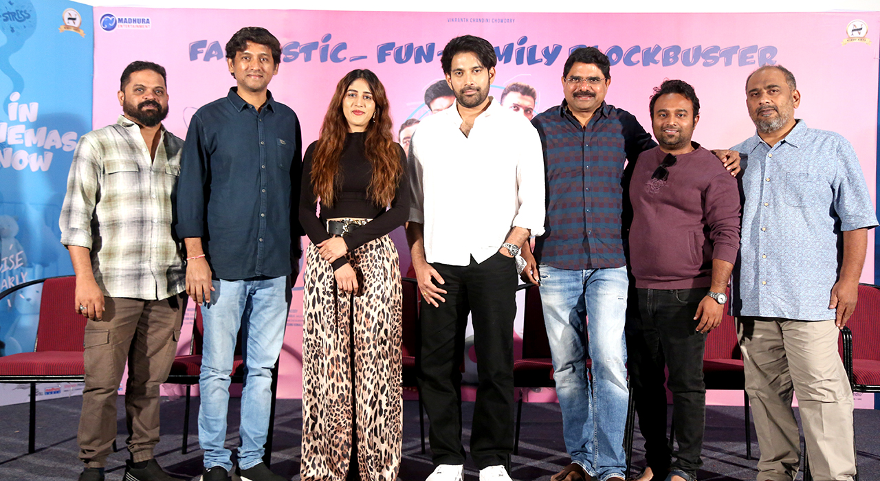 The family drama Santana Prapthirasthu, starring Vikranth and Chandini Chowdary, hit theatres today and has been met with an enthusiastic response across both Telugu states. Directed by Sanjeev Reddy and produced by Madhura Sreedhar Reddy and Nivvi Hariprasad Reddy under the banners Madhura Entertainment and Nivvi Arts, the film is earning appreciation from both viewers and critics alike.