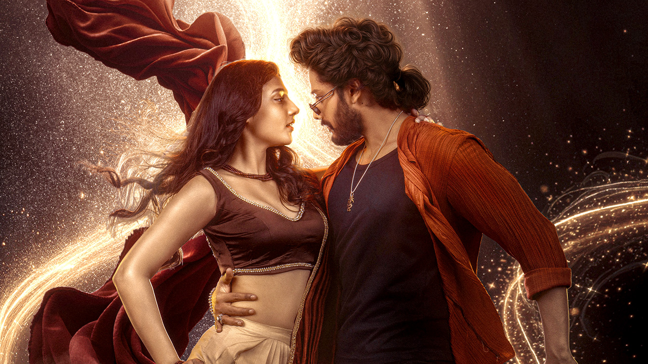 Teja sports a rugged, stylish look, exuding heroic charisma in a futuristic outfit, while Ritika captivates in a stunning appearance. The poster captures their intense gaze against a backdrop of swirling golden energy — a visual nod to the film’s larger-than-life mytho-fantasy setting.