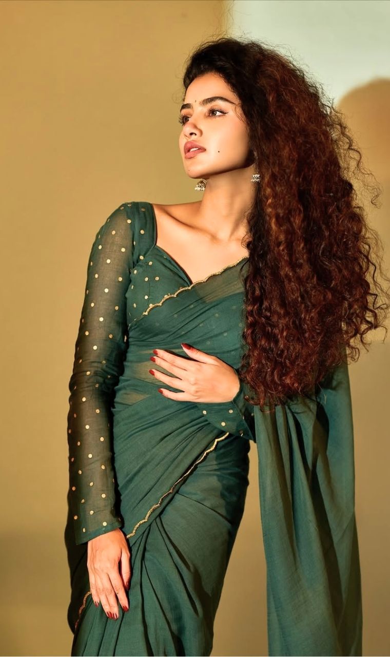 Anupama Parameswaran Serving timeless elegance in a rich green saree, radiating grace and confidence.