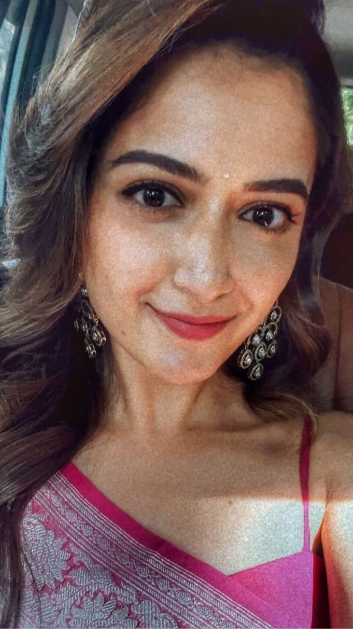 She pairs the saree with a stylish sleeveless blouse, keeping the look modern yet classy.