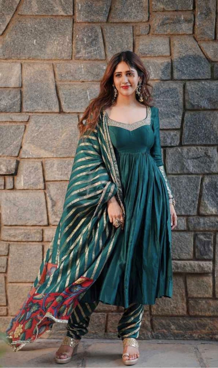 Elegance Personified! Chandini Chowdary stuns in a beautiful teal-green traditional outfit.
