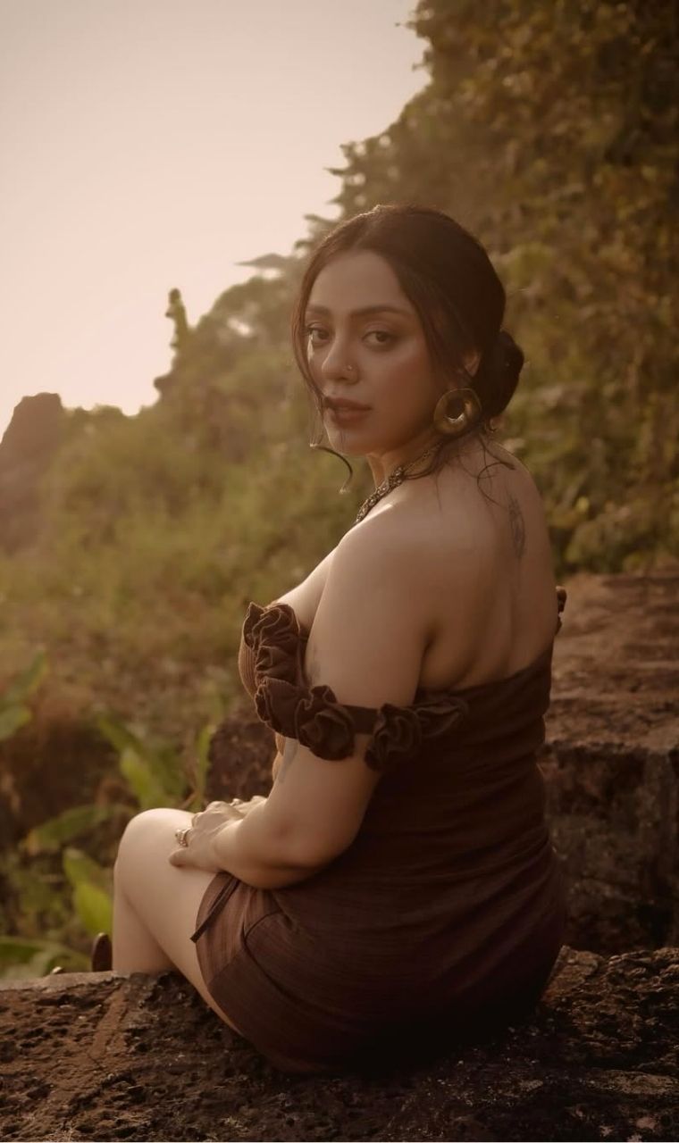Draped in earthy tones, Deviyani embraces a raw, natural aesthetic