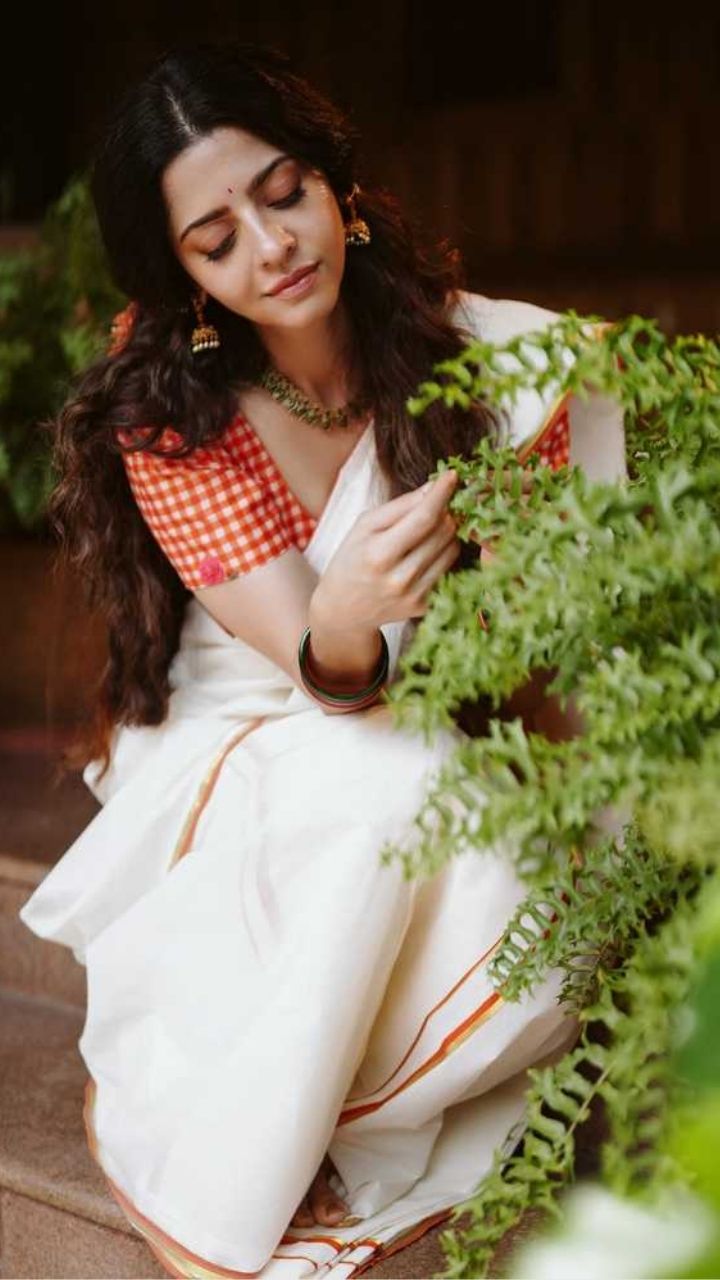 Grace meets simplicity 🤍 Vedhika shines in a classic white saree paired with a vibrant blouse
