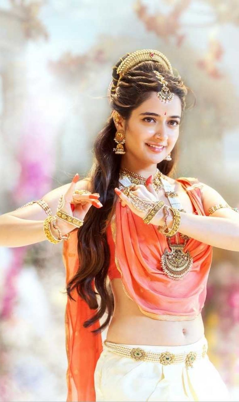 The traditional styling, delicate craftsmanship, and her radiant aura bring alive the grandeur of ancient royalty, making this look an unforgettable visual treat.