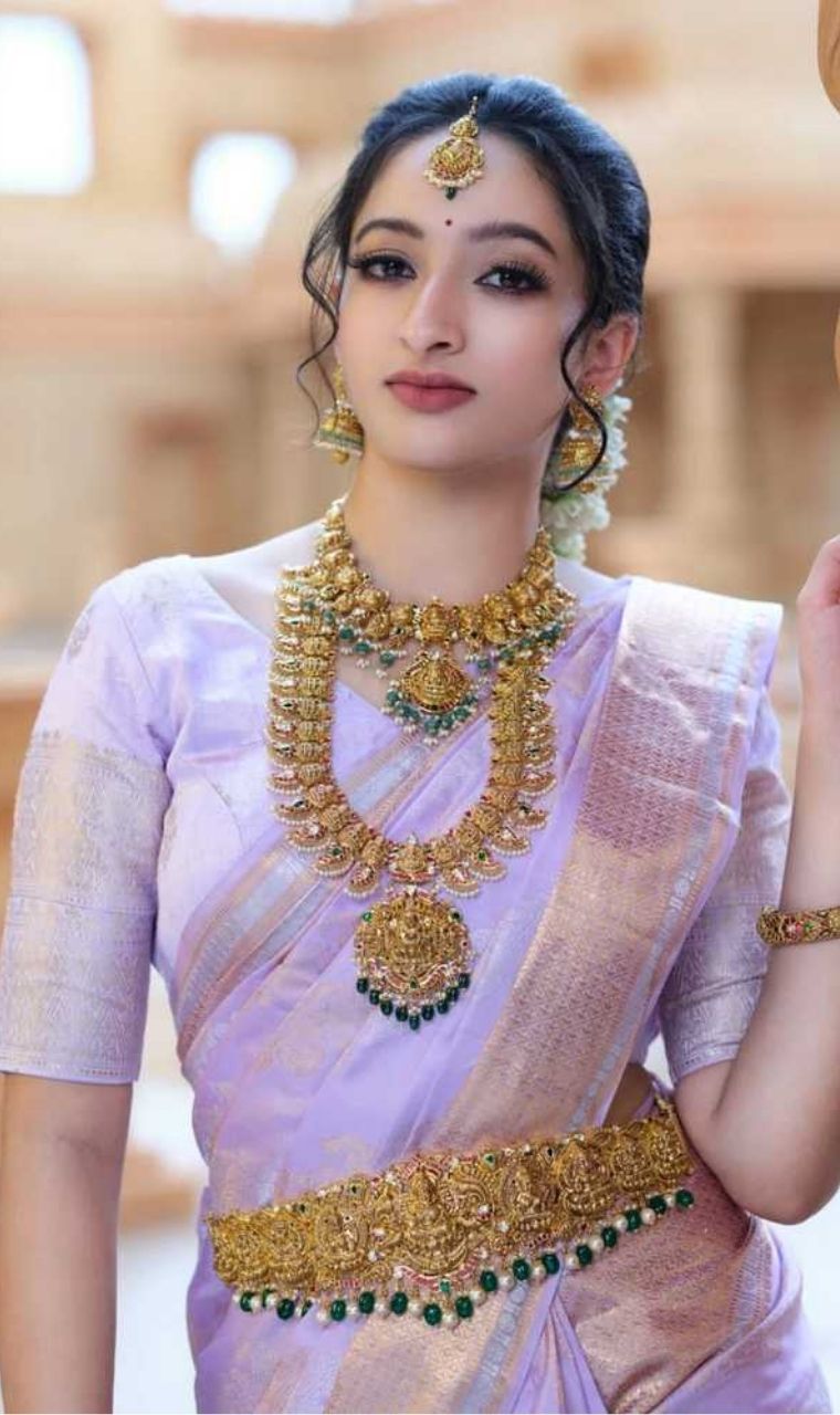 Jewels that Speak Tradition Adorned in heritage gold and emeralds, she embodies sophistication and culture.