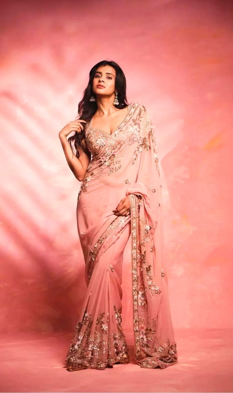 Elegance Redefined Hebah Patel stuns in a blush pink saree, radiating timeless charm.