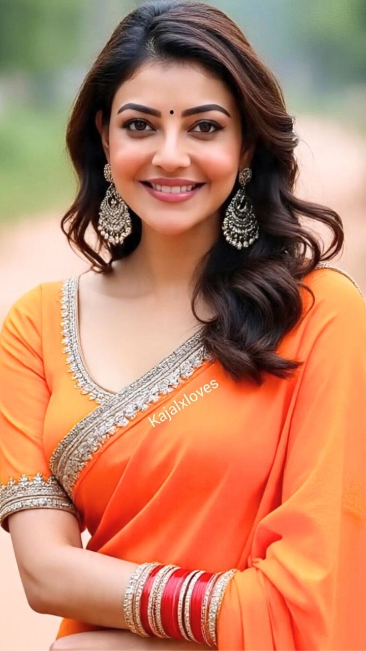 Grace Personified Kajal Aggarwal stuns in a vibrant orange saree, exuding charm and timeles