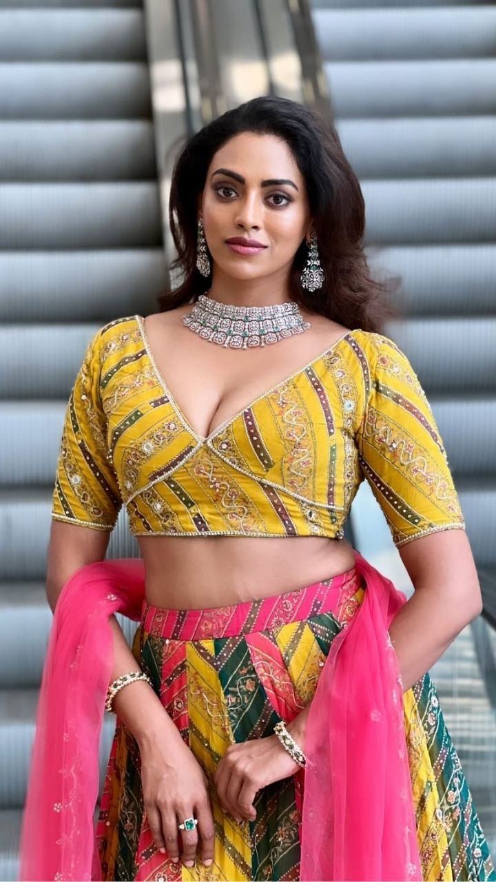 Actress Kamakshi Bhaskarla turned heads in a stunning yellow ethnic blouse paired with a vibrant lehenga.