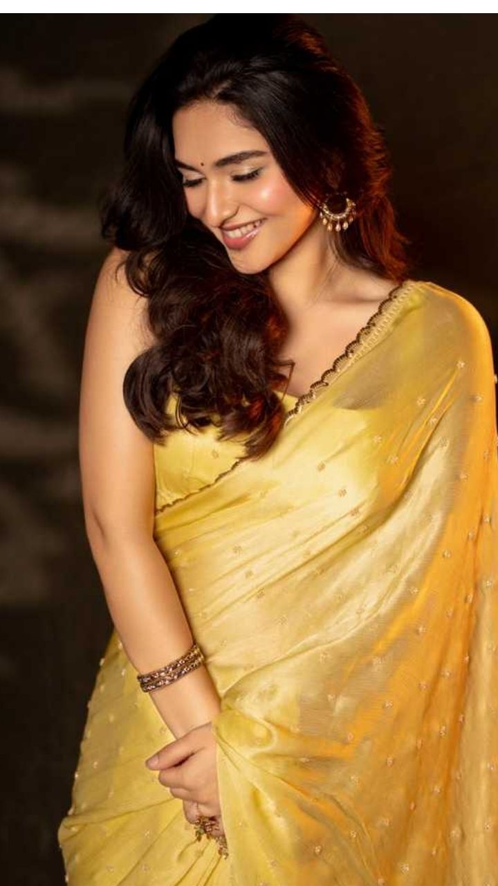 Wrapped in a soft golden saree, Kayadu Lohar radiates classic charm with a modern touch.