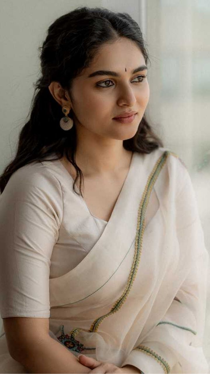 Classic Beauty Draped in a soft ivory saree, Kayadu redefines elegance with minimal styling and natural glow.