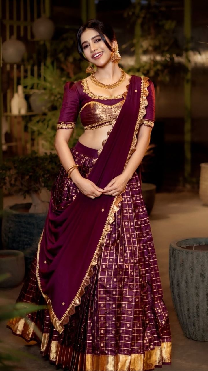 ✨ Nabha Natesh dazzles in a rich maroon lehenga, blending tradition with modern grace ✨