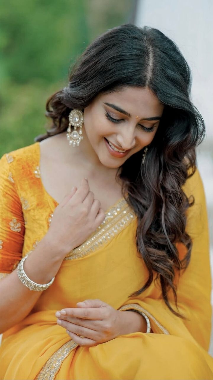 Nishvika Naidu looks radiant in a bright yellow ethnic outfit.