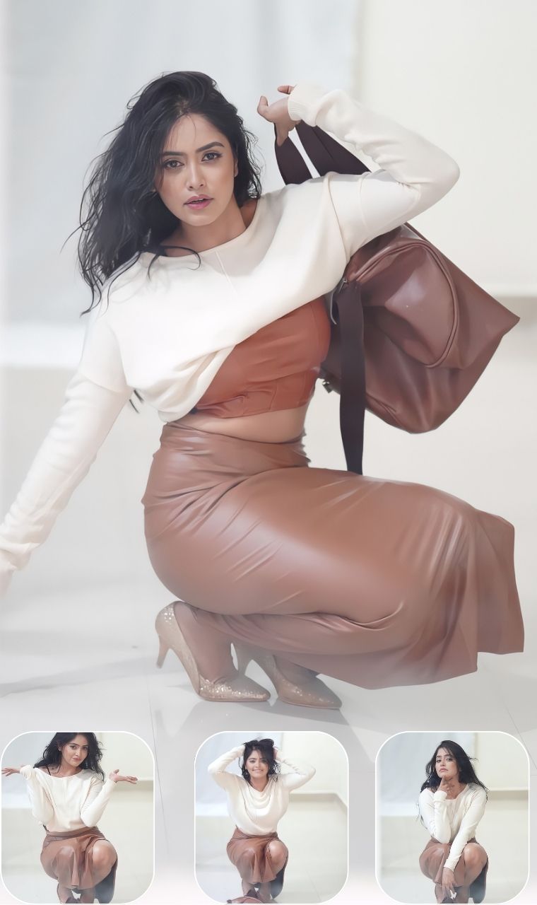 Effortless Glamour Pragya Nayan captivates with her chic style in a brown leather skirt and trendy crop top.