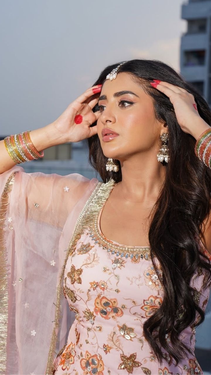 Grace in Bloom 🌸 Rashi Singh looks stunning in a soft pastel lehenga, radiating elegance and charm in every frame.