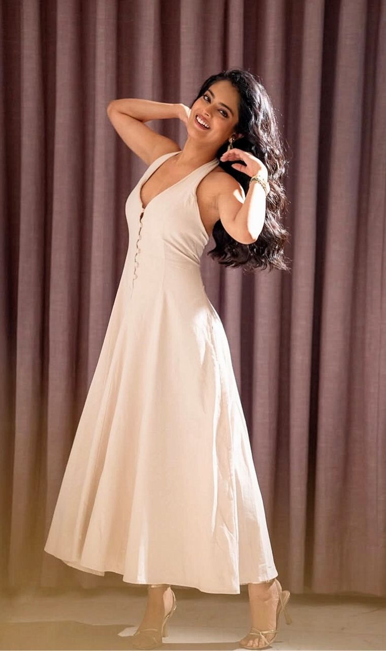 With soft curls, subtle makeup, and confident poise, Riddhi proves that elegance never goes out of style
