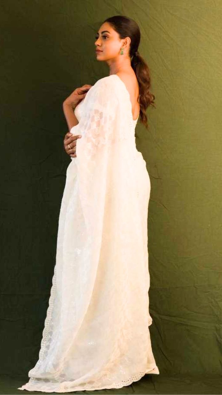Elegance meets simplicity 🤍 Sai Kamakshi stuns in a classic white saree look