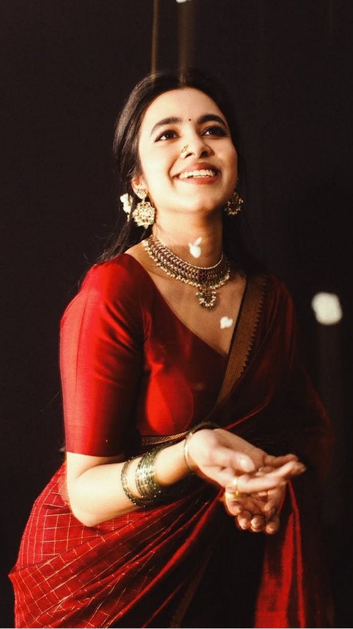 Elegant in Red Shivani Nagaram stuns in a rich red saree, blending tradition with effortless grace.