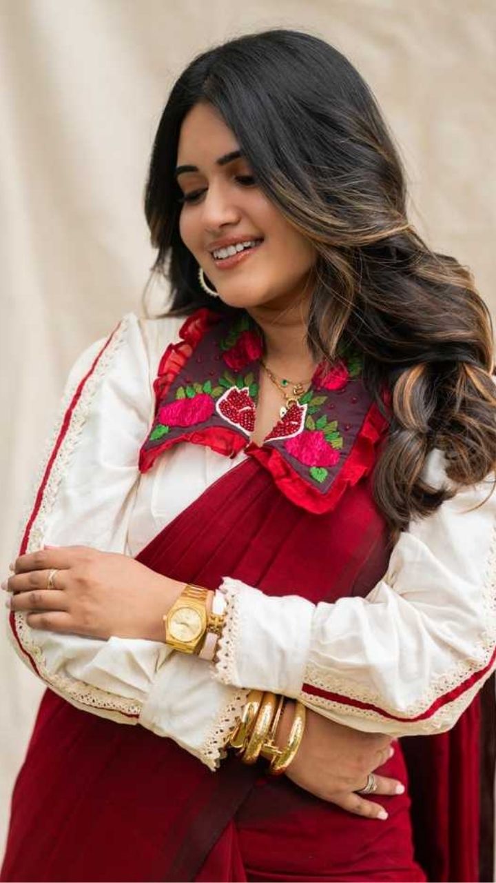 Grace meets glow as Sravanthi Chokkarapu turns heads in this elegant maroon saree look 💫
