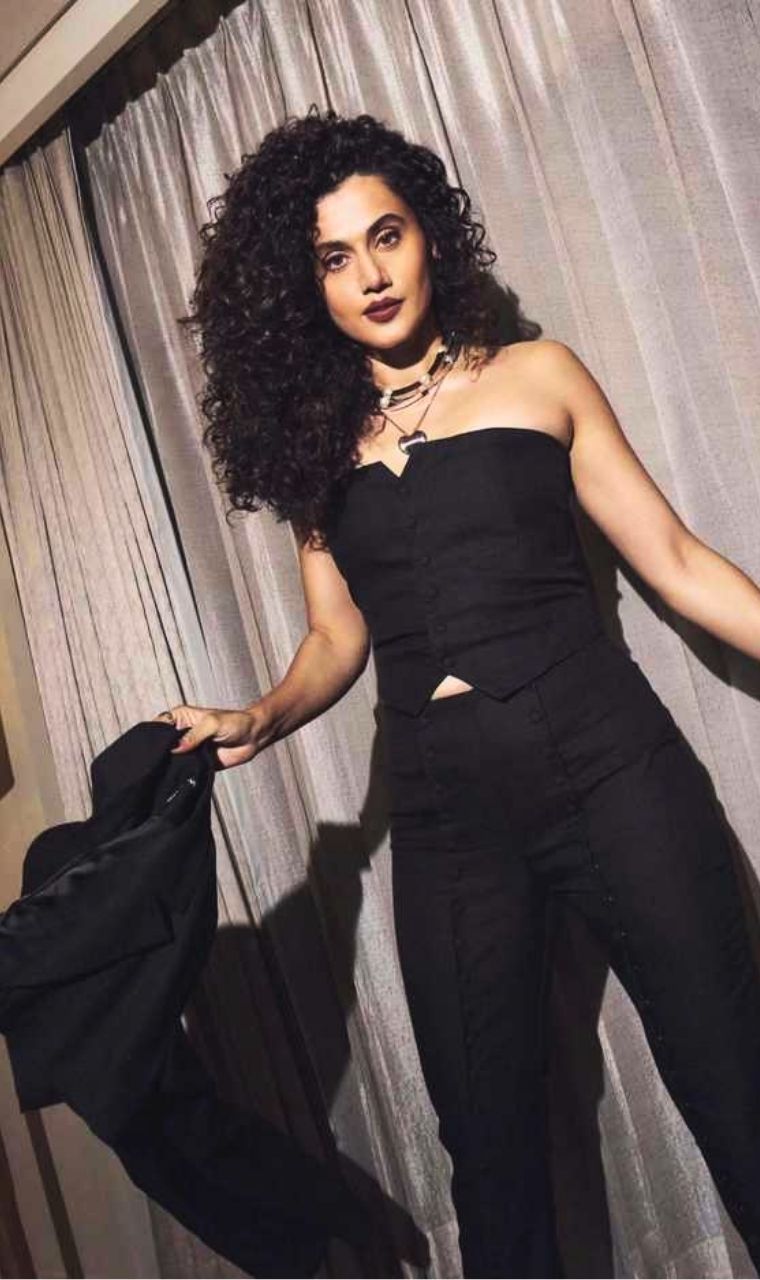 Curly Hair Magic Owning her natural curls, Taapsee proves that bold hairstyles perfectly complement edgy outfits.