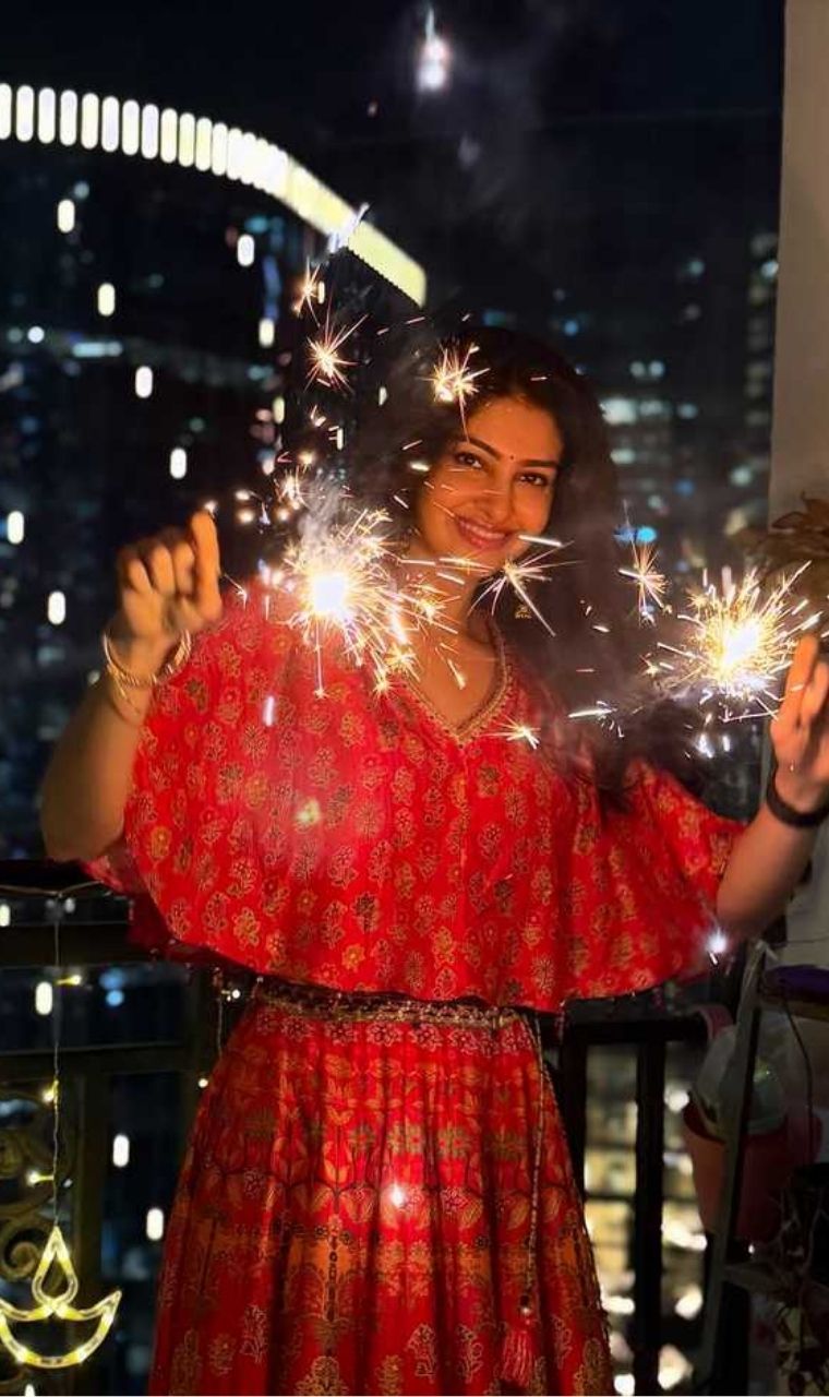 Radiance that matches the lights around her Subtext: Every frame captures her festive spirit.