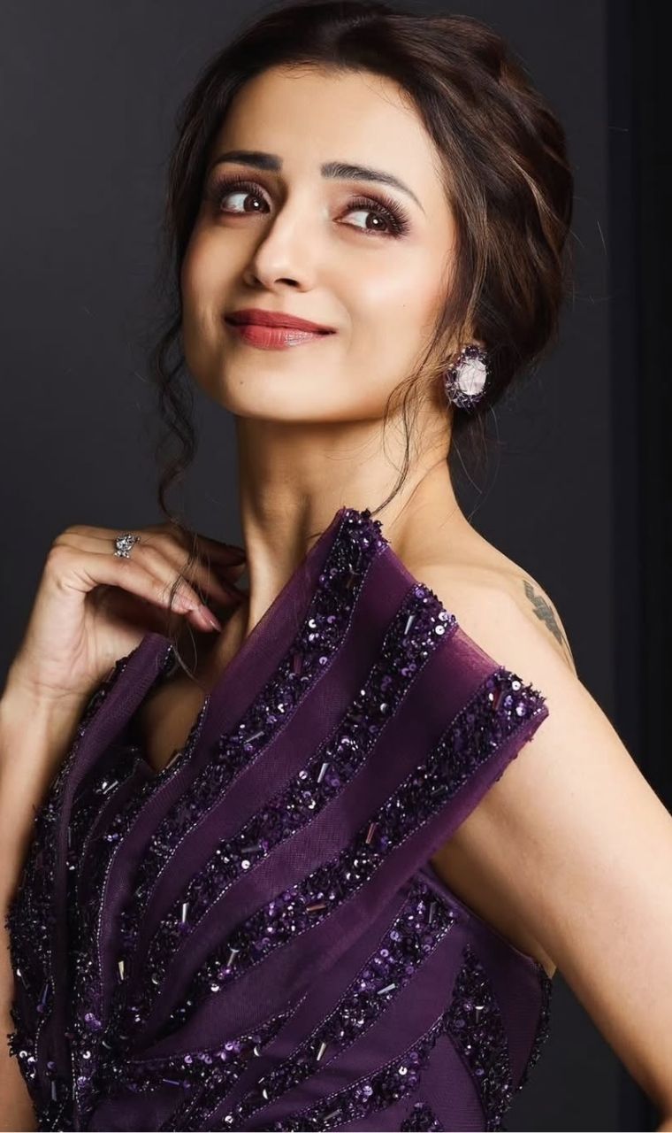 South Queen Trisha Krishnan turns heads in a stunning embellished purple gown.